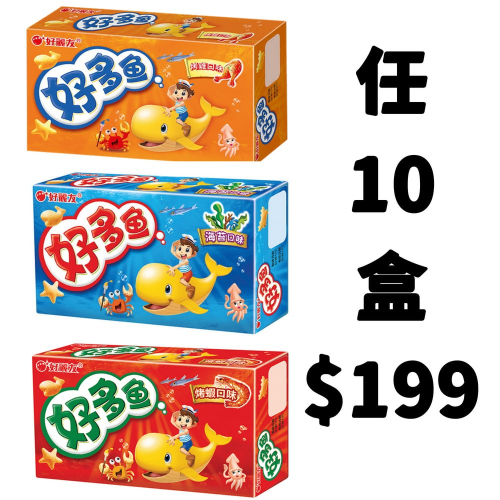 好麗友 好多魚餅乾10盒組 烤蝦風味 l 海苔風味 l 烤雞風味 隨機10盒