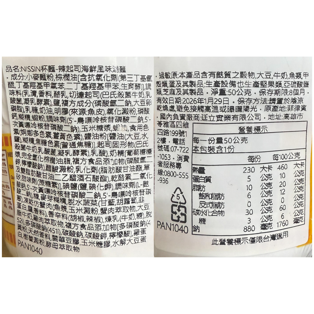 NISSIN杯麵 辣起司海鮮風味湯麵 小杯麵 50g