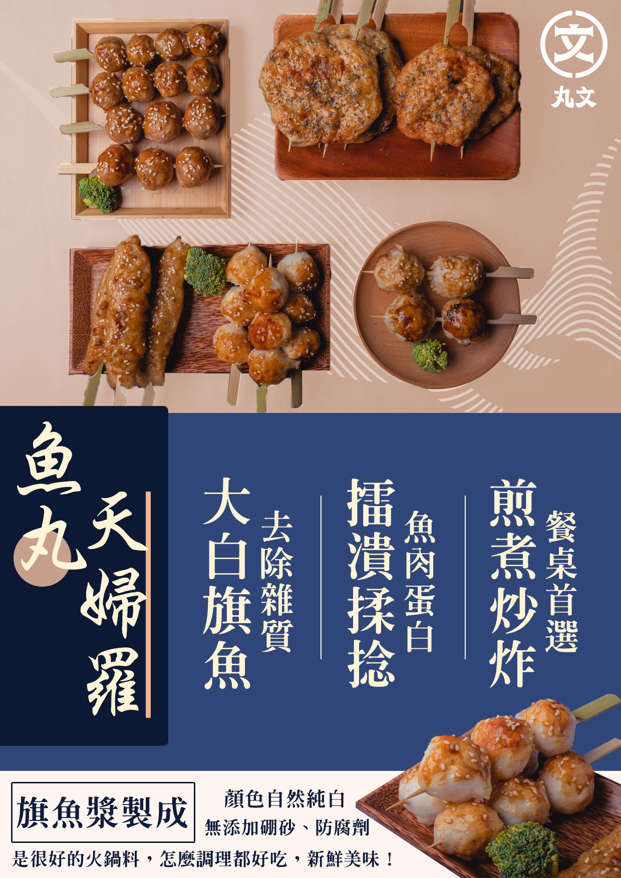 中秋烤肉組包含丸文招牌旗魚丸、甜不辣共9件,適合4-6人家庭組選擇。經營超過74年的丸文,是台中有名的魚香世家,憑藉著代代相傳的職人手法,不用添加香精、色素等添加物,就能做出美味的旗魚丸、天婦羅,讓大家品嘗美食的同時也能守護健康。