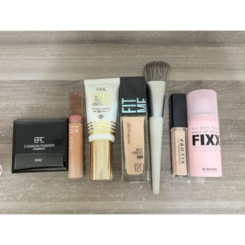 全新有盒子 DHC 眉筆盤 into you 口紅 9成新 全新有盒子 DHC BB霜 (可當美容液、藥用美白美容液、妝前乳、防曬霜、粉底、遮瑕膏) Fit me 粉底液 色號120 粉底刷9成新 1028遮瑕膏9成新 色號自然色 可當提亮