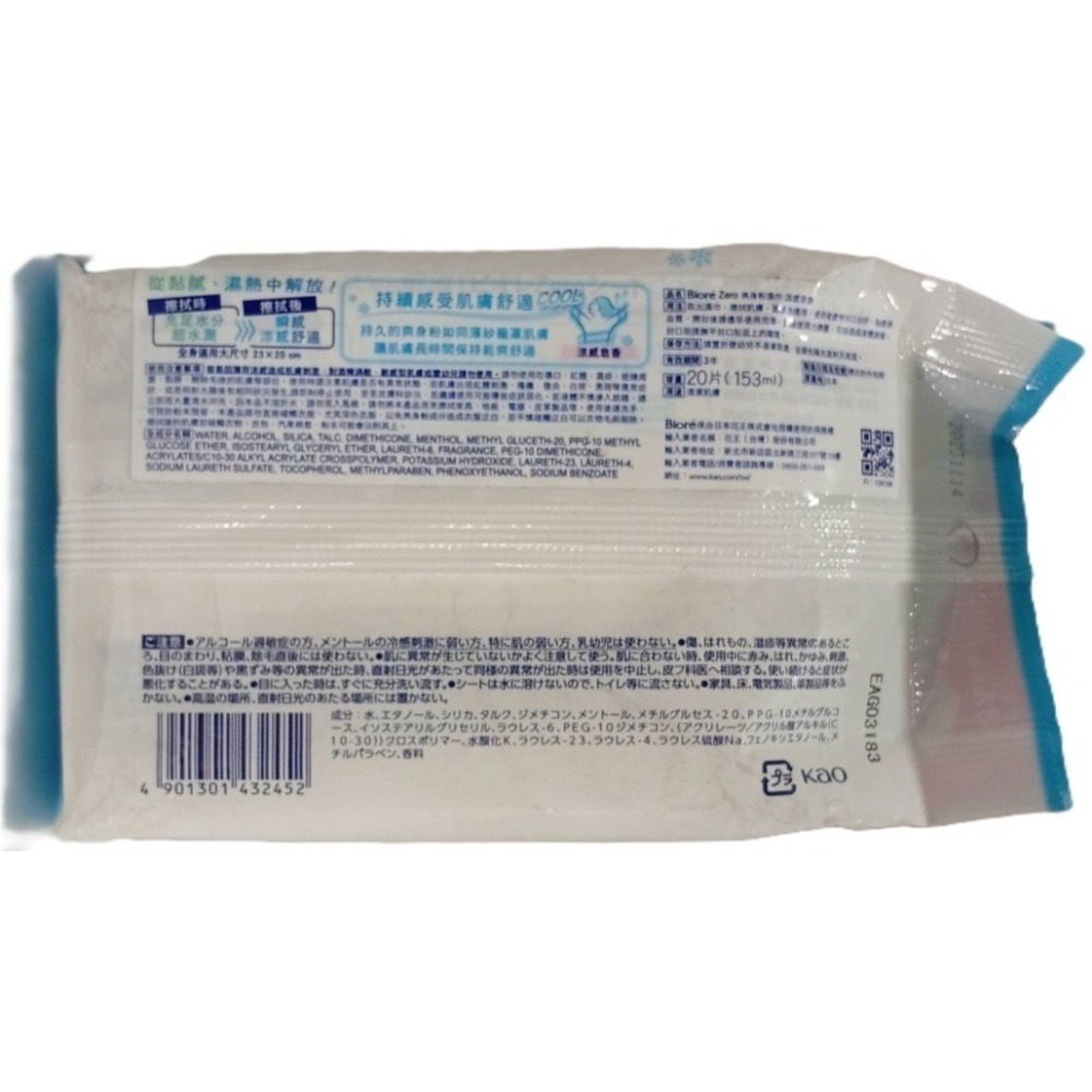 【市集樂購】Bior′e Zero爽身粉濕巾 涼感皂香(20片)
