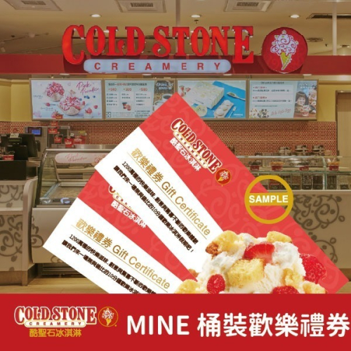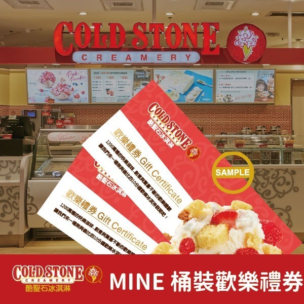 ● 憑本券可至COLD STONE任一直營門市兌換價值新台幣400元之MINE享樂桶經典冰淇淋(容量475ml)乙桶。