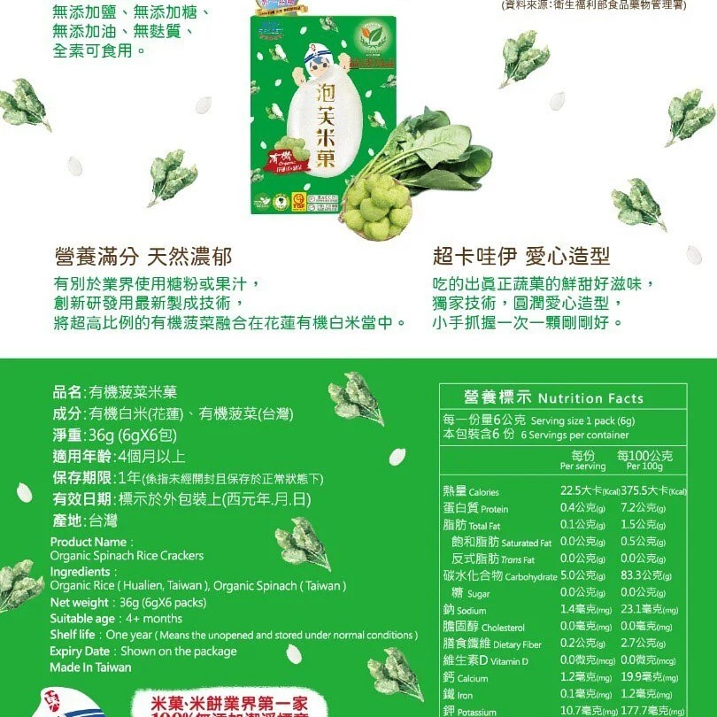 波菜:有機白米(花蓮)、有機菠菜(台灣)