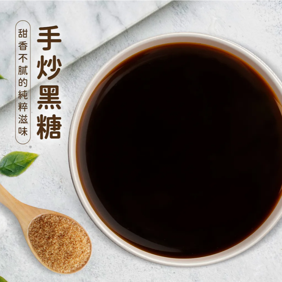 以純正二砂糖與黑糖親自手炒,無添加化學加工品,甜香不膩口的純粹滋味!
