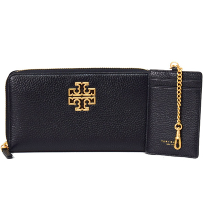 TORY BURCH 雙T-LOGO皮格拉鍊長夾-附卡套-黑色