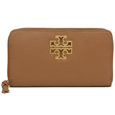 TORY BURCH 雙T-LOGO皮革素面長夾-駝