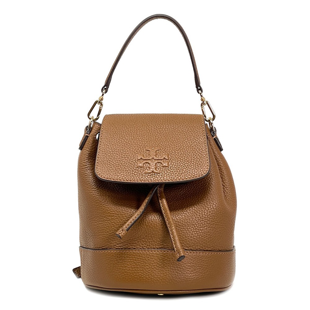 TORY BURCH 素面皮革翻蓋後背包-焦糖