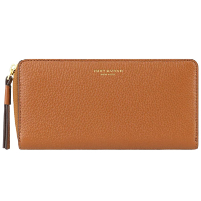 TORY BURCH 素面皮革拉鍊長夾-焦糖