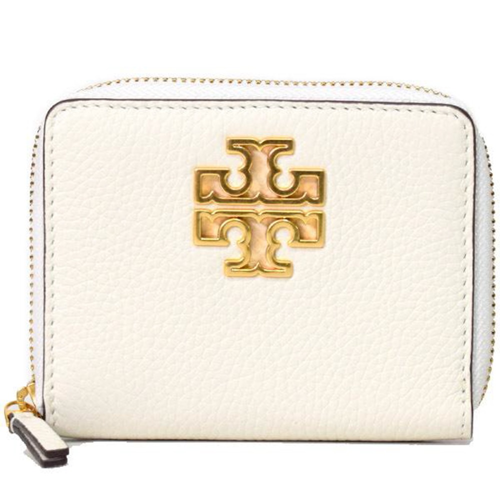 TORY BURCH 雙T-LOGO素面拉鍊短夾-白色