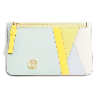 TORY BURCH 撞色皮革拉鍊短夾-綠藍黃