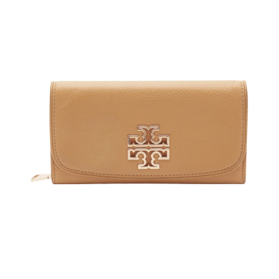 【TORY BURCH】雙T LOGO皮革翻蓋長夾-淺卡