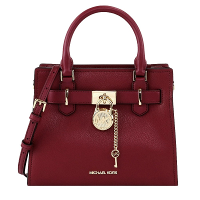 【MICHAEL KORS】素面皮革造型兩用包-酒紅