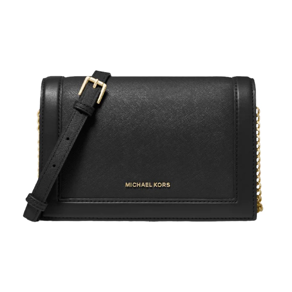 【MICHAEL KORS】翻蓋皮革斜背包-黑