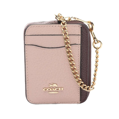 【COACH】撞色皮革鍊帶零錢包-芋頭粉