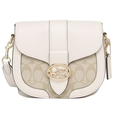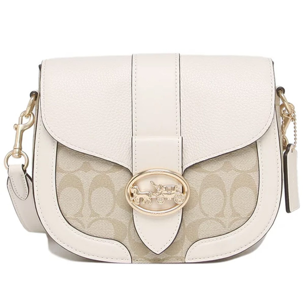 【COACH】拼接皮革翻蓋馬鞍包-米白