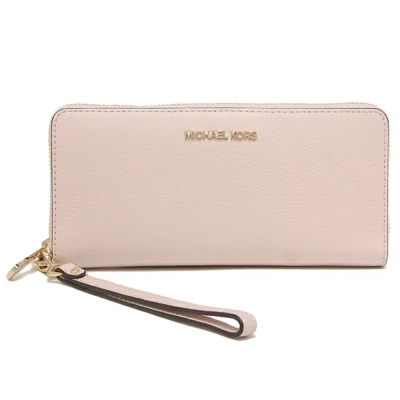 【MICHAEL KORS】鵝卵石紋皮革拉鍊長夾-淺粉