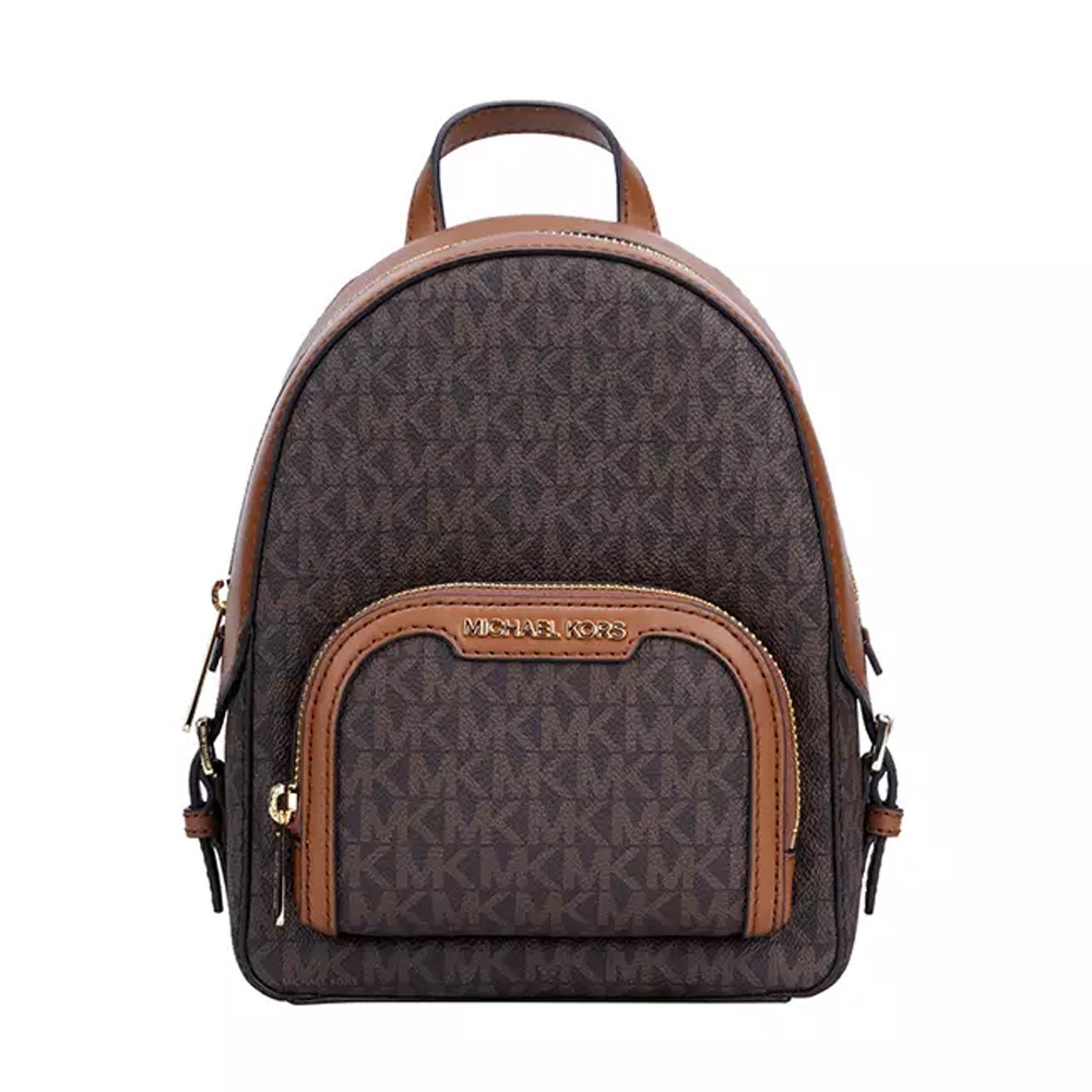 【MICHAEL KORS】牛皮拼接老花防刮皮革後背包-咖啡焦糖