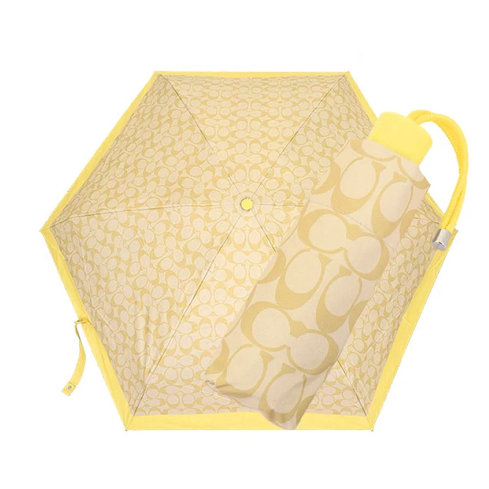 【COACH】滿版LOGO抗UV折疊傘-卡其色