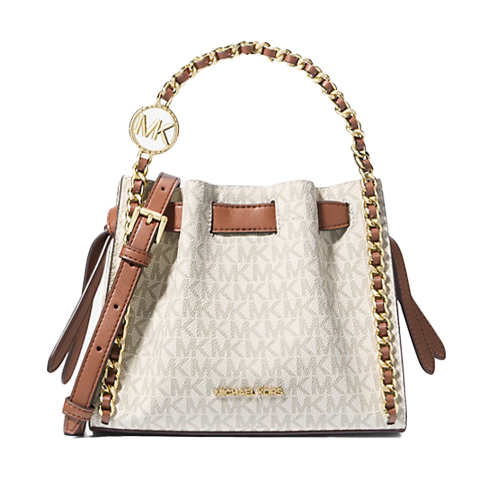 【MICHAEL KORS】滿版LOGO造型皮革鍊包-香草白