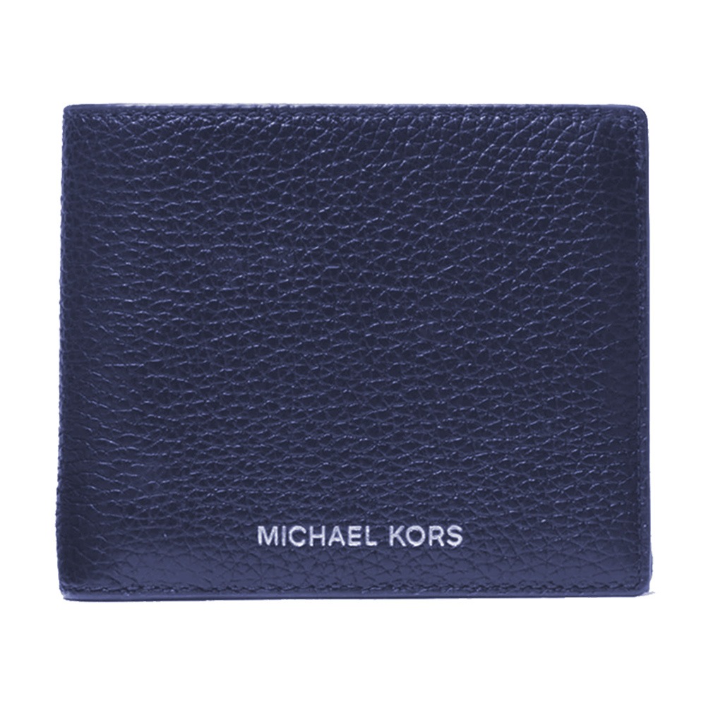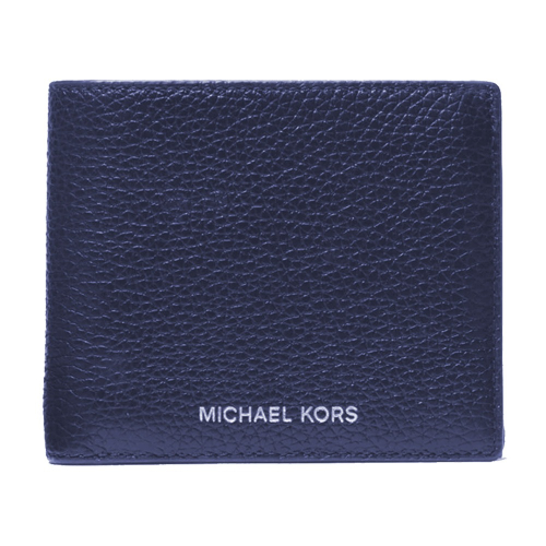 【MICHAEL KORS】燙字LOGO荔枝紋皮革短夾-深藍