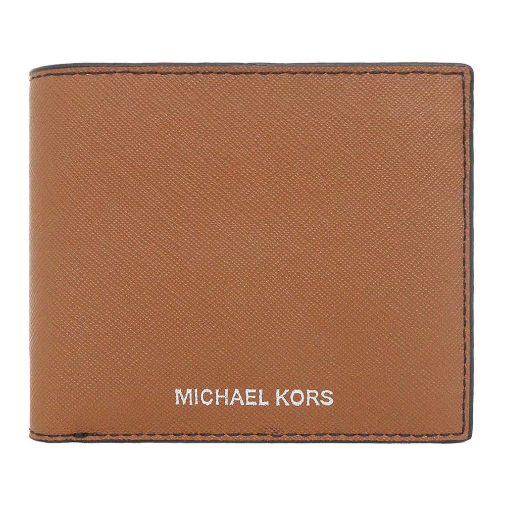 【MICHAEL KORS】滿版LOGO皮革短夾-焦糖棕