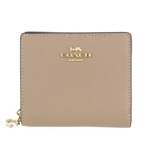 【COACH】鵝卵石皮革二折短夾-奶茶色