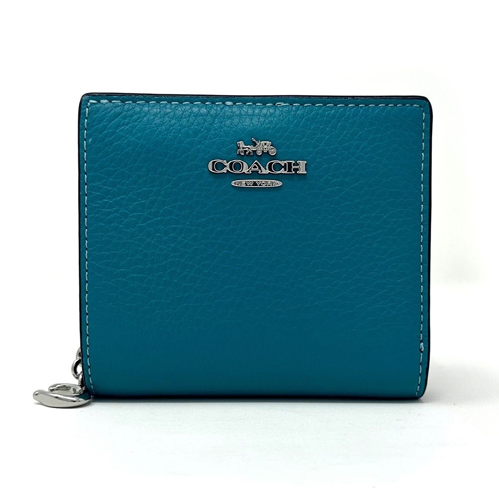 【COACH】鵝卵石皮革二折短夾-土耳其藍