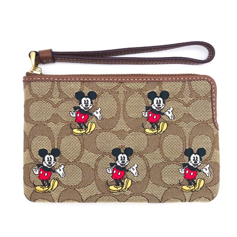 【COACH】印花防刮PVC皮革L型拉鍊手拿包-迪士尼