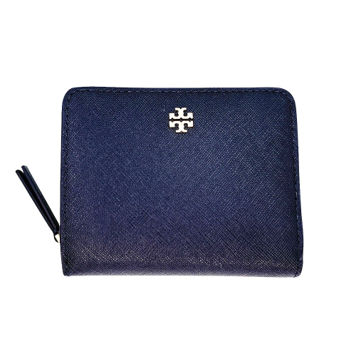 【TORY BURCH】防刮皮革拉鍊短夾-深藍