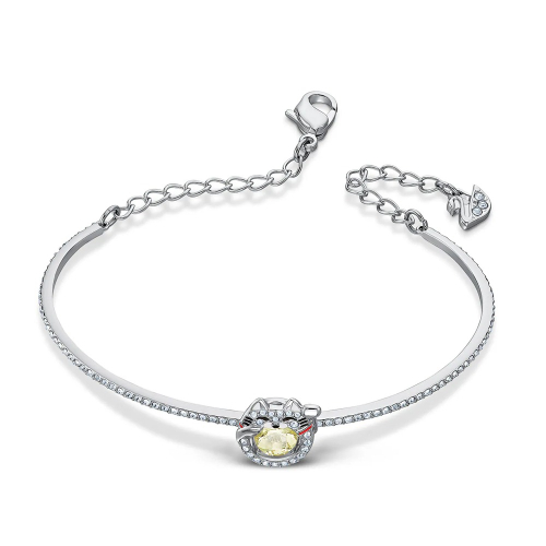 【SWAROVSKI】招財貓鑲水晶靈動手環-銀