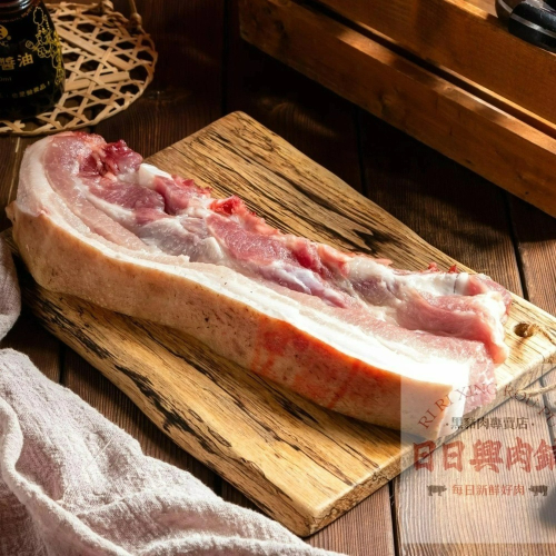 為豬隻背脊下方肚腩的部位。俗稱的五花肉!皮、豬油、肉三層分明,故也名為三層肉。油脂豐富口感溫潤,切塊、紅燒、燉煮、醬滷最佳。不會因為長時間烹調肉質變老,反而更入味可口。