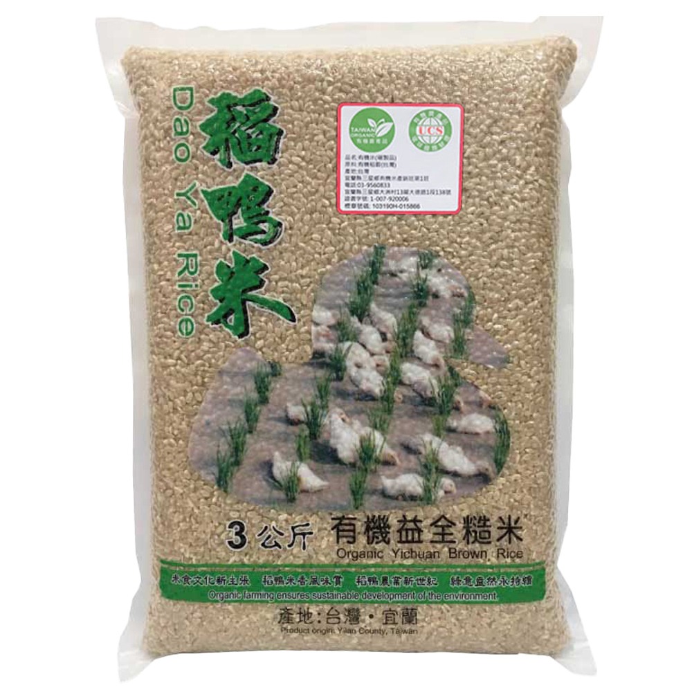 上誼稻鴨米有機益全糙米3公斤/1包入