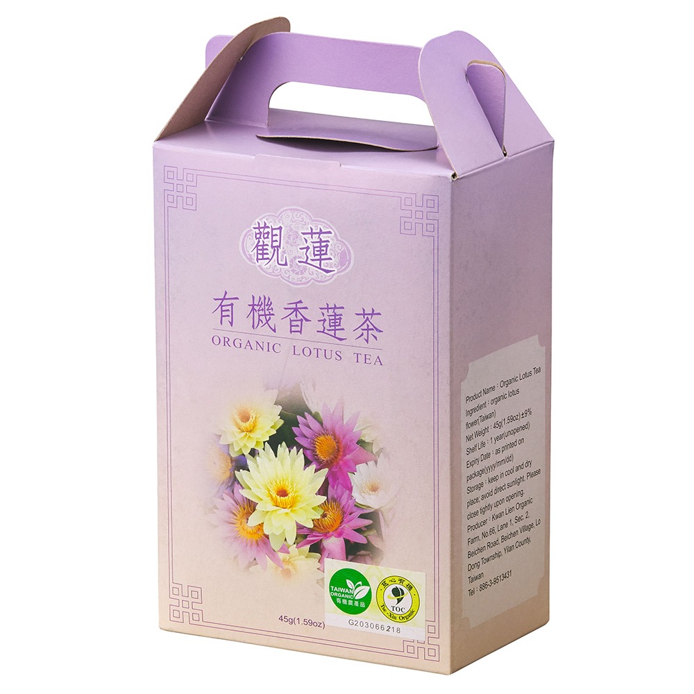 有機香水蓮經低溫烘烤,保留原有色澤及香氣。放入熱水,花瓣在杯壺胡中迴旋展開,釋放出脫俗芬芳,瀰漫在心肺中,恍若親臨那片有機水田。可視個人體質酌加枸杞、桂圓。不含咖啡因、單寧酸。