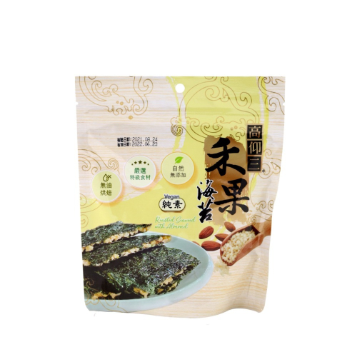 1.特選A級海苔片與的美國杏仁粒 3.完全無添加物,微鹹微甜、香脆可口、天然回甘,達到一口接一口的回味無窮