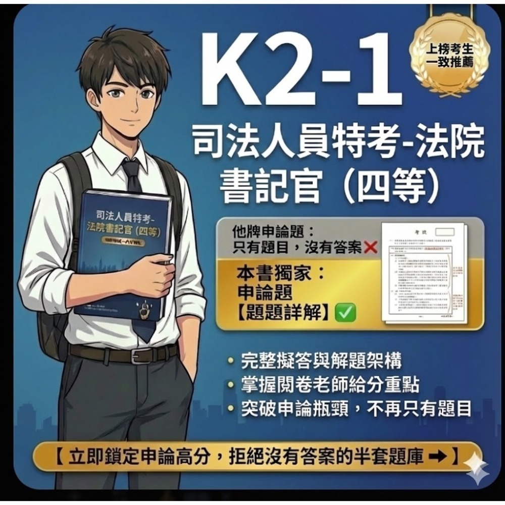 題庫名稱:司法人員考試-四等-法院書記官 歷屆試題