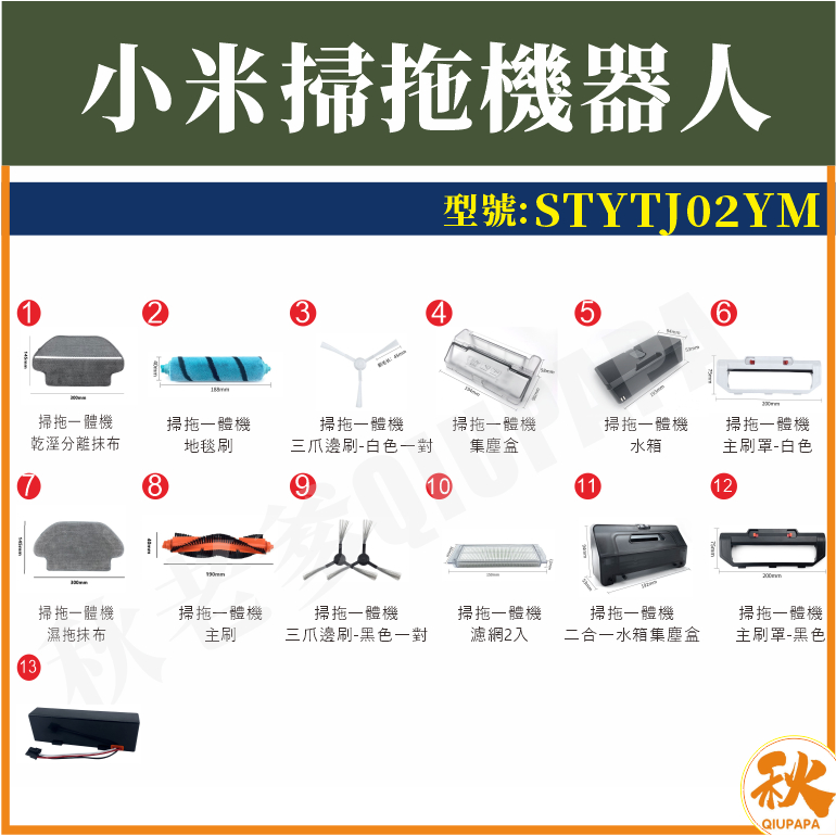 QIU 現貨 小米 米家掃地機掃拖機器人 配件 耗材 濾網 STYTJ02YM