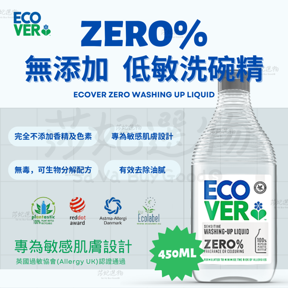 宜珂 Ecover Zero 產品系列 : 不添加任何香料、香精和色素,特別針對過敏性體質或是敏感性肌膚使用