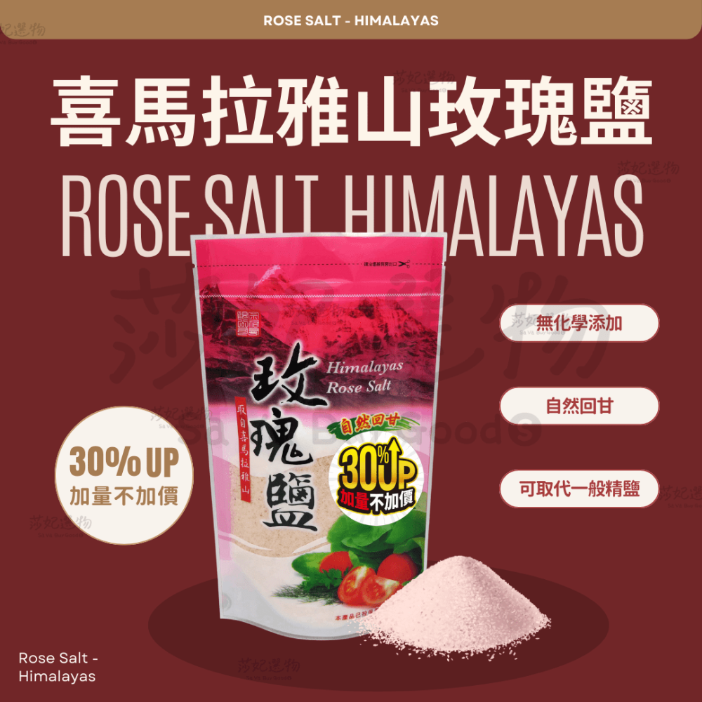 取自世界最高山 - 喜馬拉雅山岩鹽脈,經過地殼運動,地層礦物質與海水,經過長時間高溫擠壓,結晶成粉紅色岩鹽。