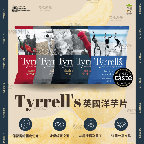 英國最好吃的手工洋芋片Tyrrell’s泰勒思,連續14年獲得食品界奧斯卡獎Great Taste Awards金牌的肯定!