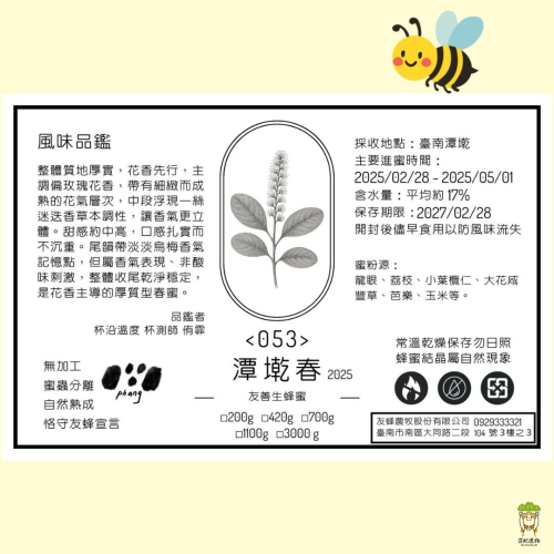 整體收尾乾淨穩定,是花香主導的厚質型春蜜。