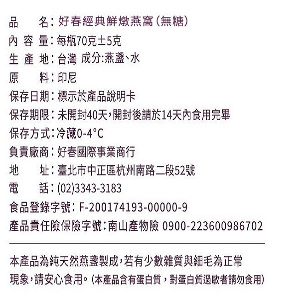 【好春燕窩】《煦日》鮮燉燕窩單入裝 / 70g