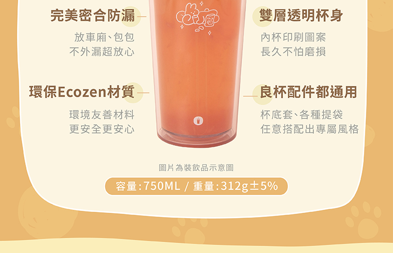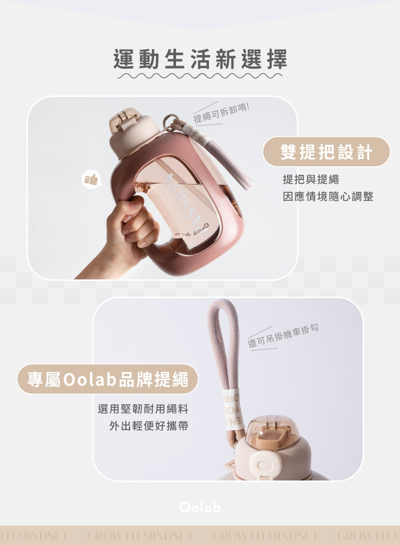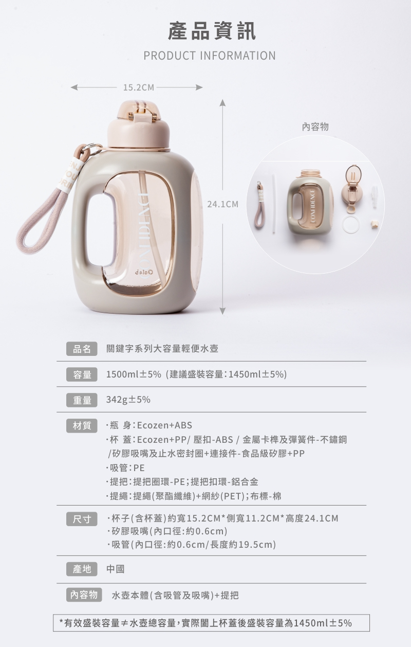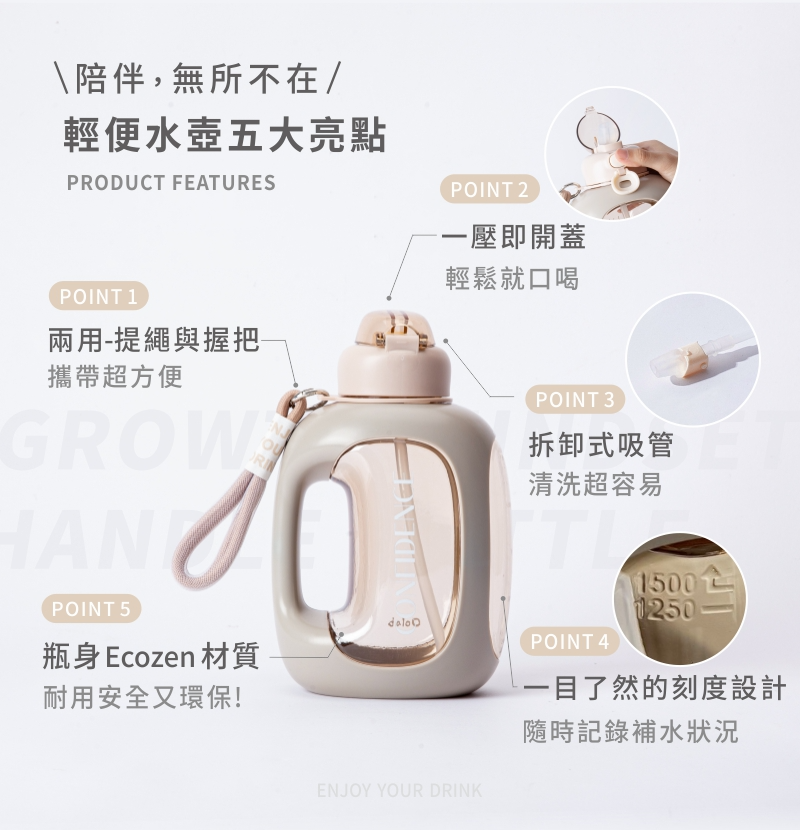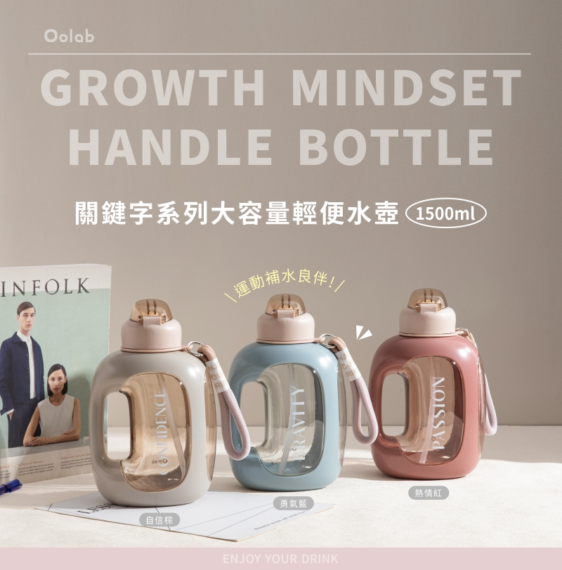 【Oolab】1500ml關鍵字系列大容量輕便水壺(3款)+750ml ECOZEN透明雙層隨行杯-陪伴系列(任選)
