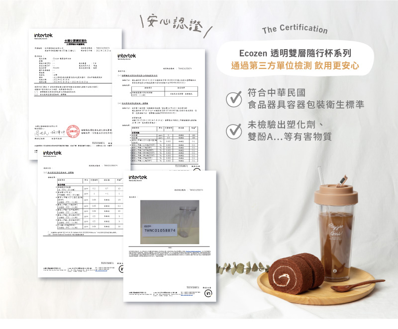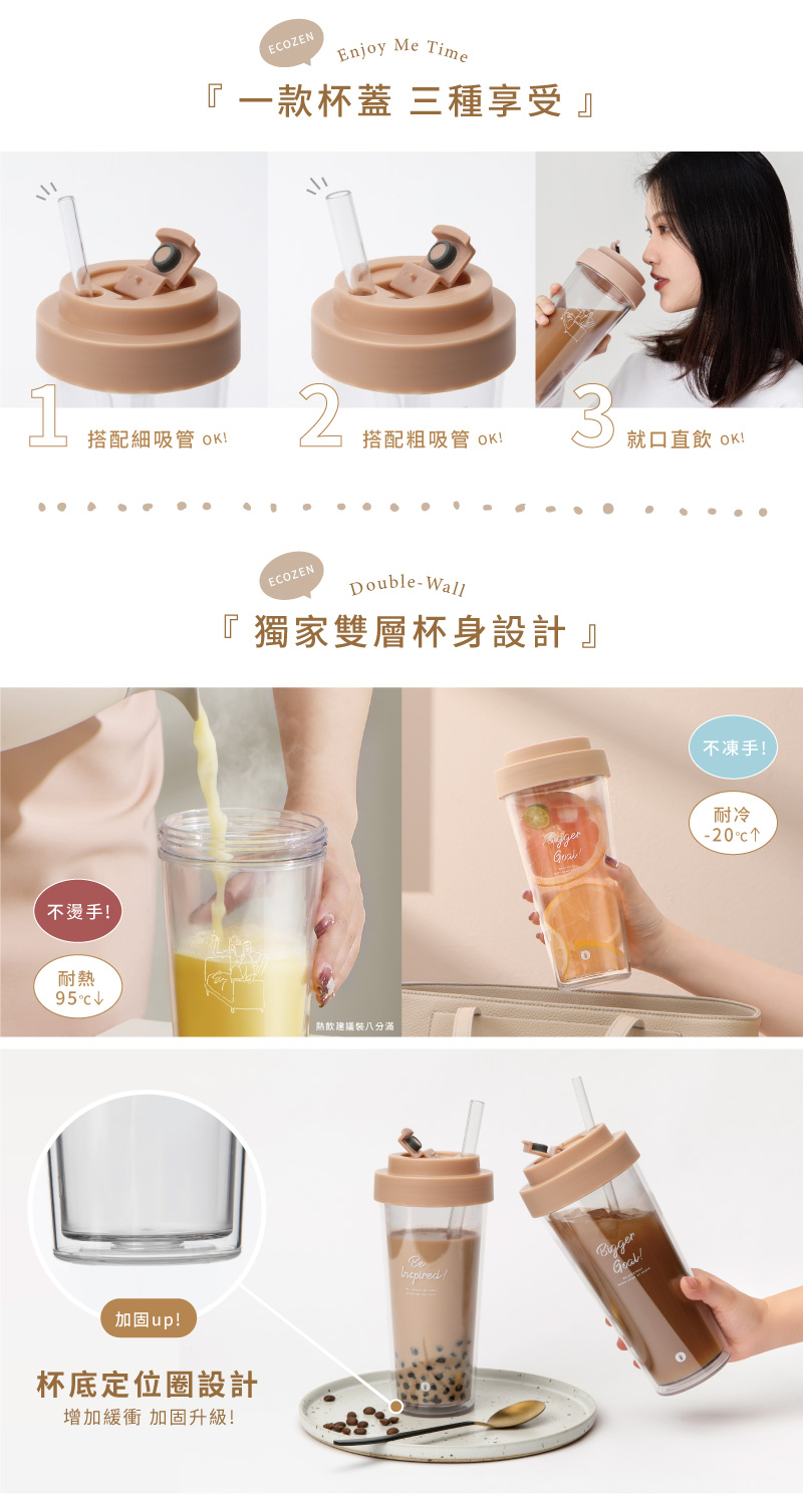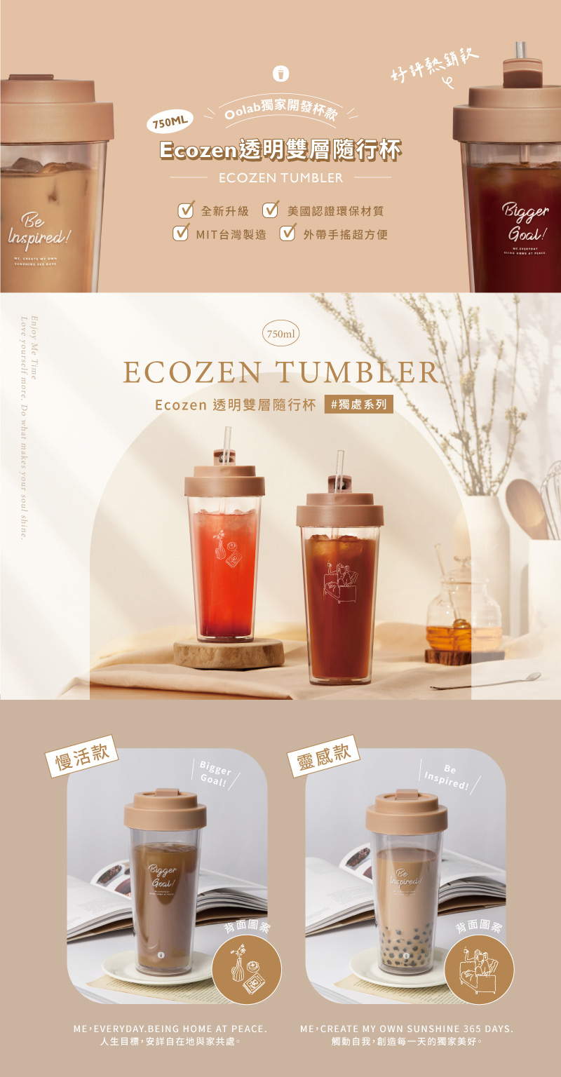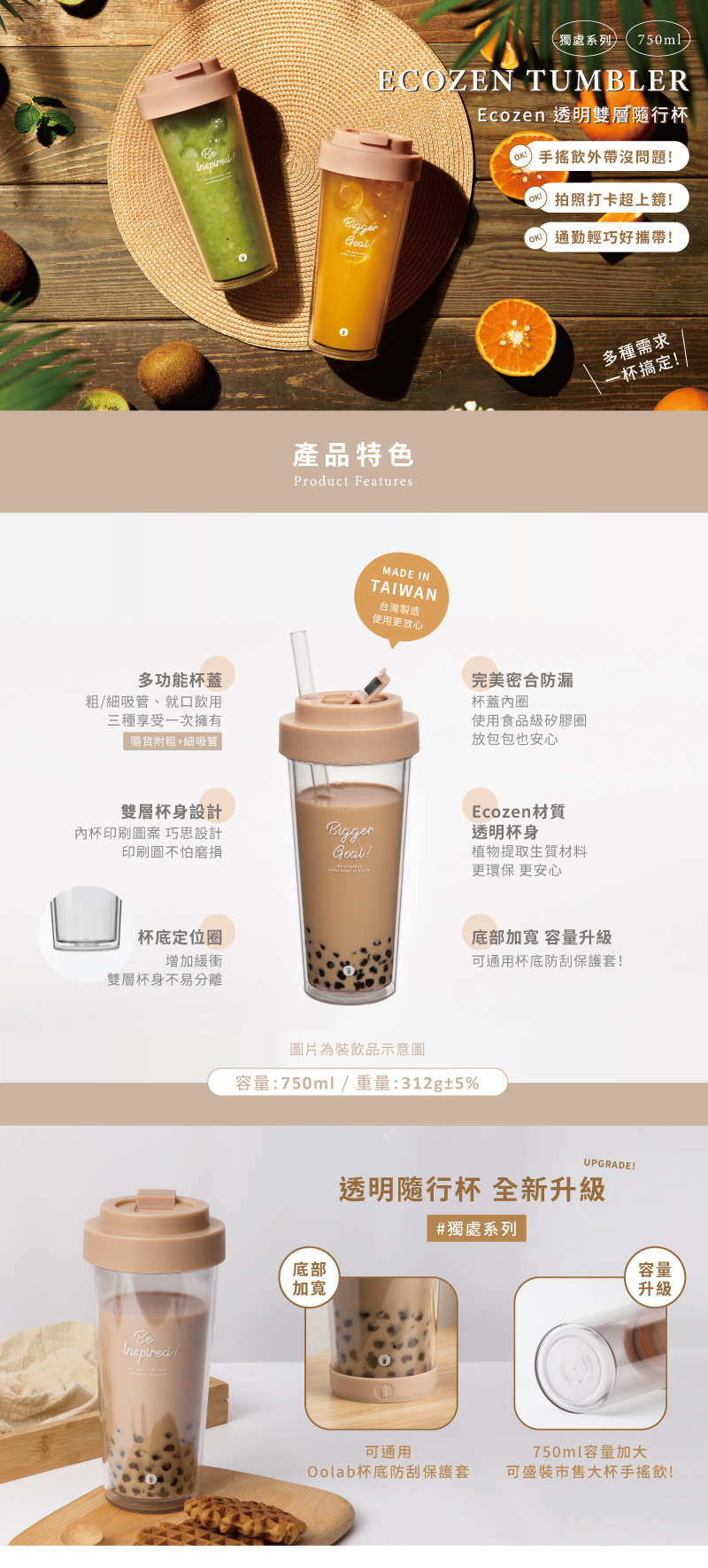 【Oolab】750ml ECOZEN透明雙層隨行杯(靈感/慢活) + 800ml豆沙吸管杯 (任選)