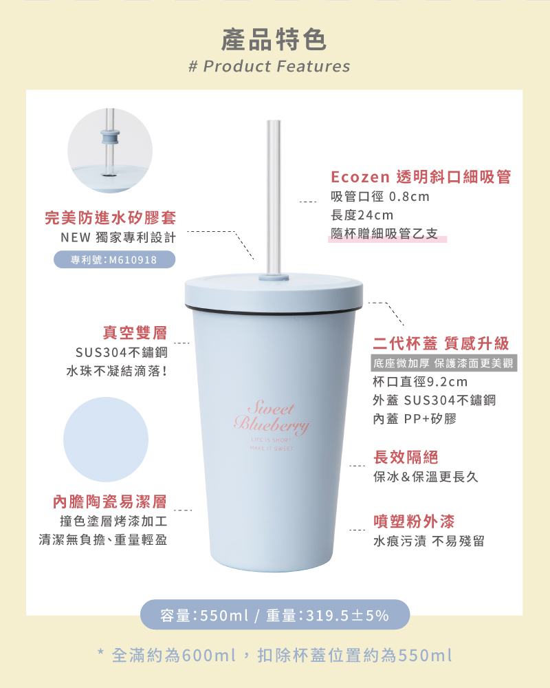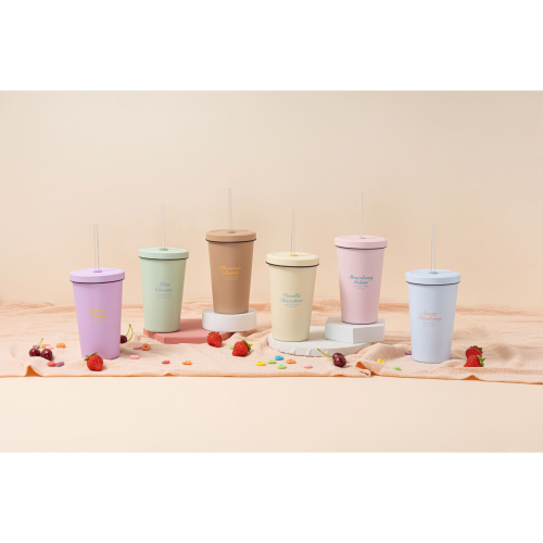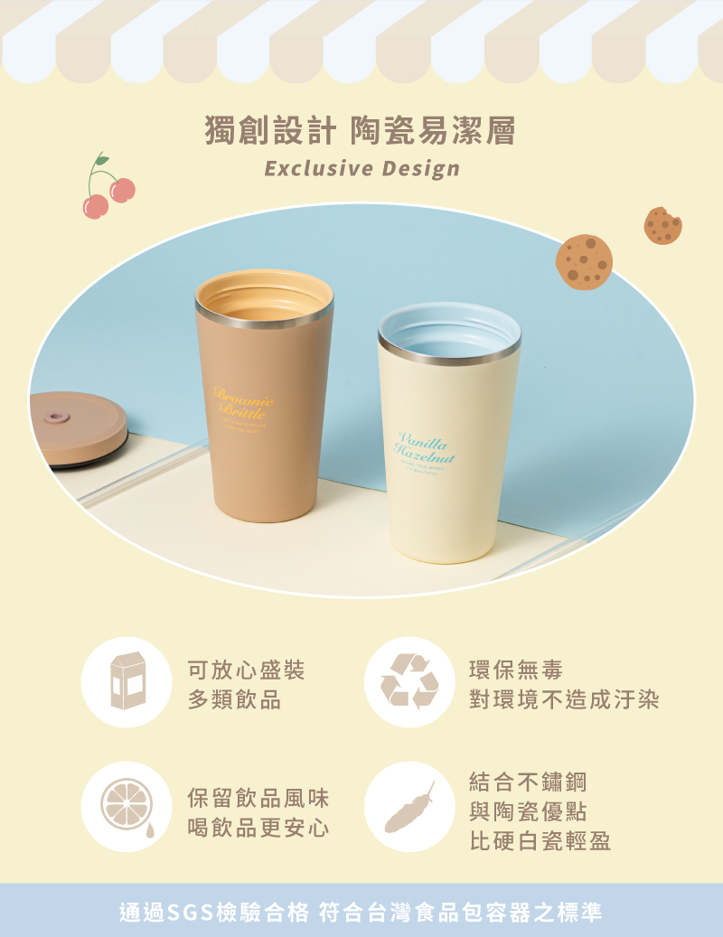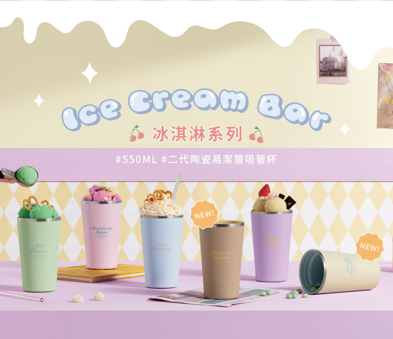 【Oolab】二代-冰淇淋系列陶瓷易潔層吸管杯550ml(6款) + 冰淇淋輕量撞色防潑水提袋 (任選)