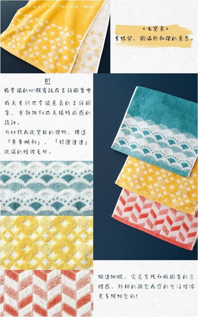 ◇七寶黃:有緣分、圓滿與和諧的意思。 附贈留言小卡,讓您自由書寫祝福心意,是一款適合作為賀禮的贈禮毛巾!