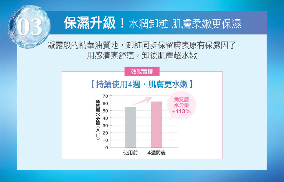 配方全面升級,不只卸粧力再進階,新加入「熟成啤酒花精華」,全面瓦解頑固角栓,毛孔潔淨更高效,卸後肌膚水嫩超清爽,真正實現毛孔越卸越細緻,膚質越卸越年輕。