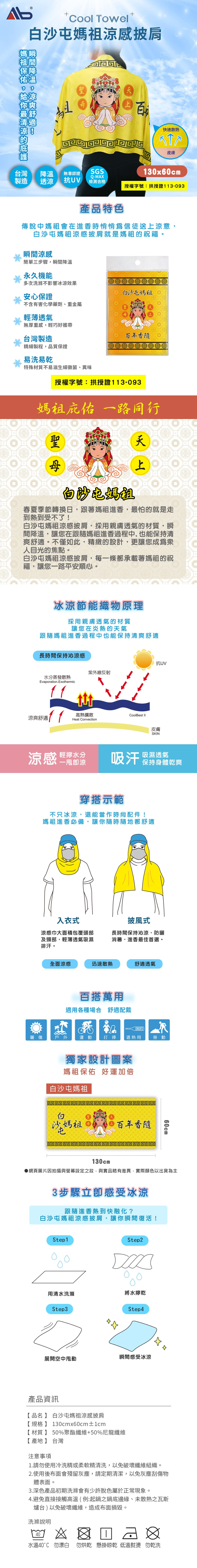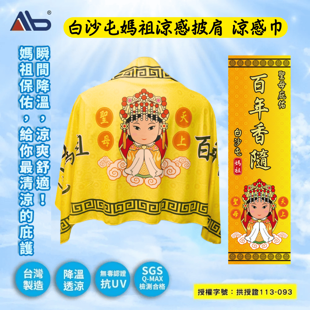 拱天宮白沙屯媽祖限量冰涼巾,乘載著媽祖的祝福,庇佑一路平安順心