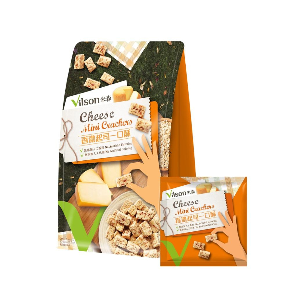 新上市 香濃起司一口酥 下午茶必備~ 商品特色 無添加防腐劑、無添加人工色素香料 專業低溫烘焙,保留完整原麥的味道 嚴選加倍帕馬森起司為基底,起司控最愛 適合全家人的好餅乾 ※1歲以上孩童可食用 銷售重點 『米森』與台灣本土餅乾大廠合作,以香濃帕馬森起司為基底,經過多次配方調整,並以專業烘焙技術完美結合香濃起司與燕麥纖維,全程無添加人工香料與色素,打造出口感與營養兼具的香濃起司一口酥,搭配便利隨手包,每一口都是濃郁起司香x酥脆綿密的雙重享受!