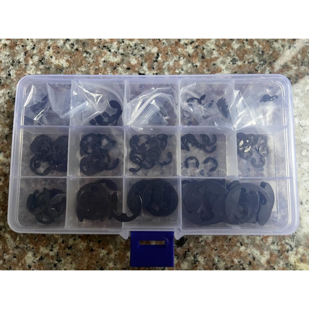 E型扣環 錳鋼/304不鏽鋼 規格: E1.5~E15 一盒 215PCS 各20個: E1.5 E2 E2.5 E3 E3.5 各15個: E4 E5 E6 E7 E8 各10個: E9 E10 E12 E15