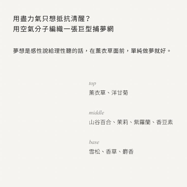 - 使用方式:空氣中噴灑二至三次,讓香氛擴散。